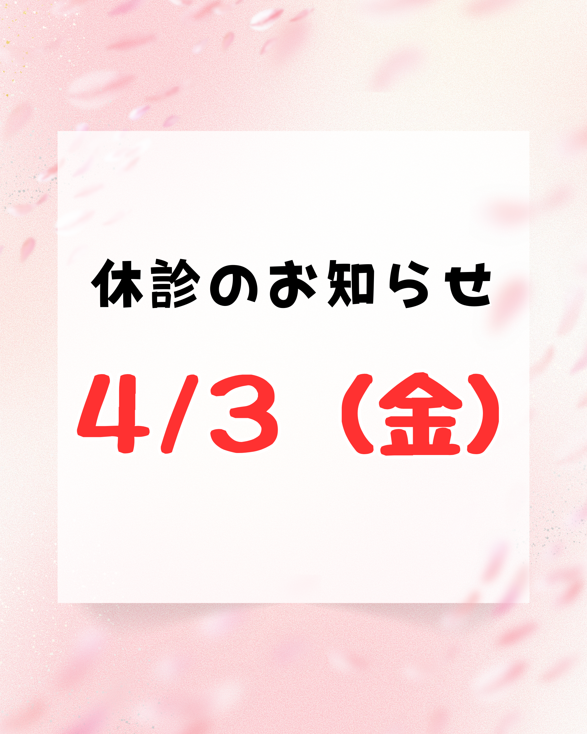 休診のお知らせ 4/3(金)