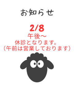 急なお知らせで申し訳ありません。 身内に不幸があり、 本日の2/16(月)夕方~ 明日、2/17(火) は休診させていただきます。 ご迷惑をおかけしますが、 よろしくお願いいたします。 Uncategorized よかったらシェアしてね! URLをコピーしました! URLをコピーしました! 休診のお知らせ 2/8 午後 この記事を書いた人 raku-kanri 関連記事 休診のお知らせ 2/8 午後 2026年2月7日 年末年始のお知らせ 2025年12月29日 休診のお知らせ 11/8(土) 2025年11月7日 11/3(月) 祝日は施療しております。 2025年11月3日 休診のお知らせ 10/10(金) 2025年10月9日 8月の休診のお知らせ※お盆は営業しております。 2025年8月13日 8/6(水)は研修のため休診です。 2025年8月5日 7/19~21日営業しております。 2025年7月18日
